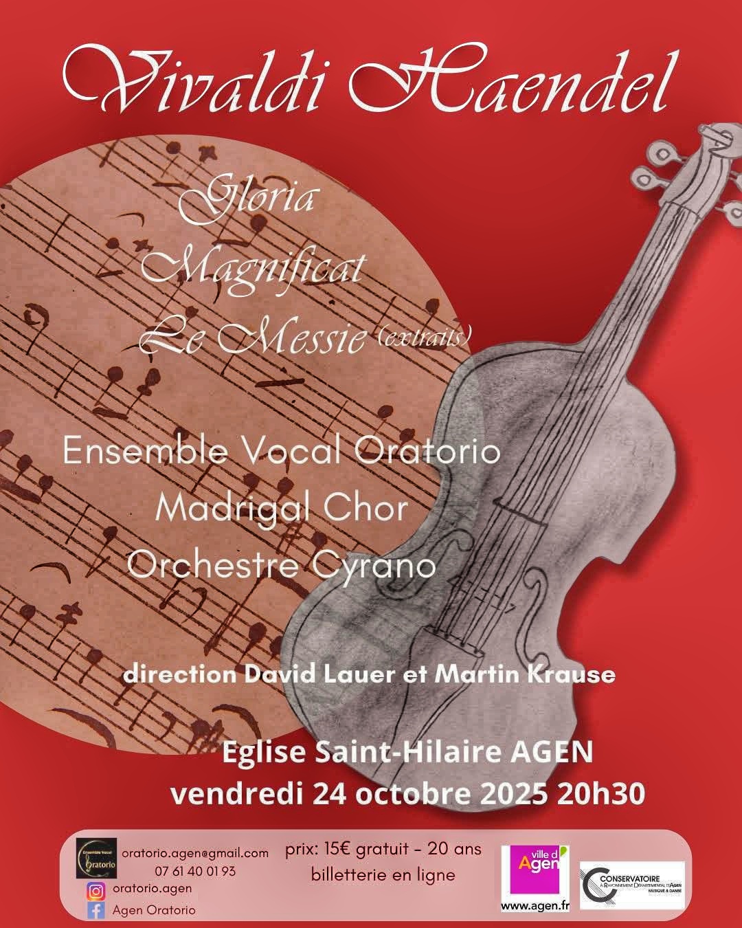 Vom 21.10. – 26.10.2025 besuchten 18 Sängerinnen und Sänger des Madrigalchors Agen, die Partnerstadt Dinslakens, um dort zusammen mit dem „Ensemble Vocal Oratorio d’Agen“ in der Eglise Saint-Hilaire ein Konzert zu geben. Aufgeführt wurden Werke von Antonio Vivaldi und Georg Friedrich Händel.
